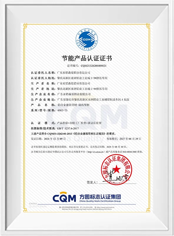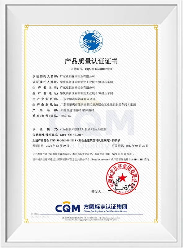 产品质量认证 – 阳极氧化型材