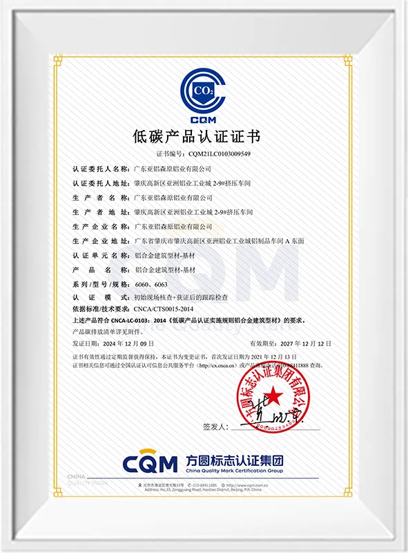 低碳产品认证——阳极氧化型材