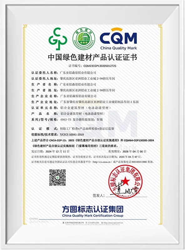 绿色建材认证——电泳涂漆型材(三星级)