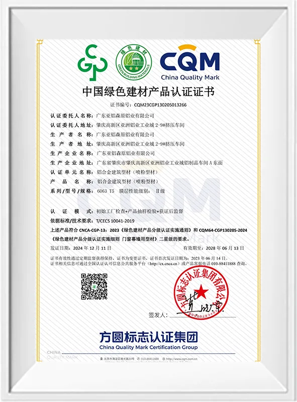 绿色建筑材料认证 – 粉末涂料型材(二星级)