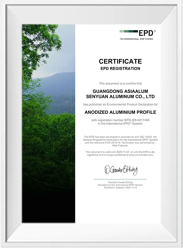 EPDI III 型环境声明 (EPD) 认证 - 阳极氧化